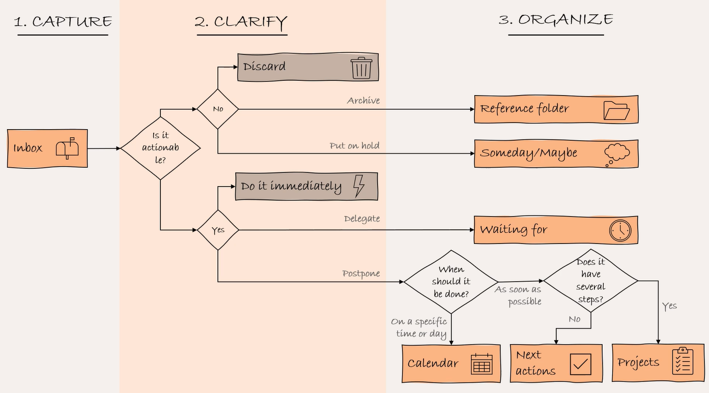 To learn more, you can read David Allan’s book or check out this 15 minute video. Note: The picture was taken from the video.